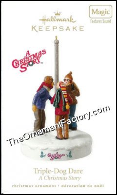This 2006 Hallmark Ornament depicts the famous scene from A Christmas Story which proved that no kid in his right mind would turn down a double dog dare. I Double Dog Dare Ya, will make any A Christmas Story fan smile.